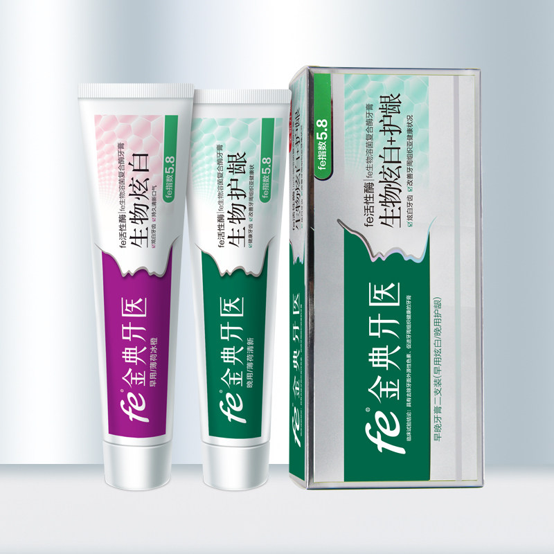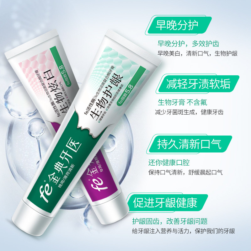 fe Jindian dentist morning and evening toothpaste biological enzyme net White protection gingival stain removal morning and evening a total of 210 grams to send samples