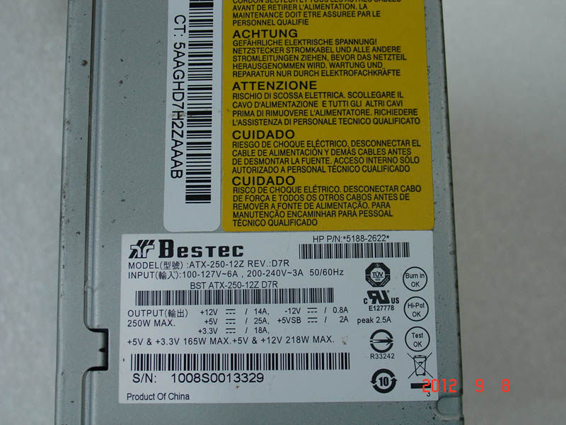 HP Power Supply PN:5188-2622 5188-2623 250W Power Supply Liande bestecATX250 12Z