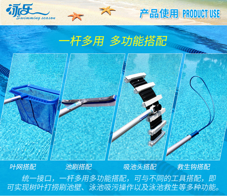 Swimming Pool Lifesaving Rod Telescopic Rod 9 m Hook Suction Dirt Machine Leaf Mesh Rod Pool Brushed Rod Suction Pool 35612 Mi Aluminum Alloy
