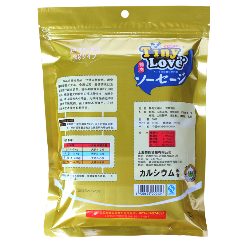 Pet snacks dog fire leg sausage TinyLove duck meat bar 30 teddy training dog bib meme kökki