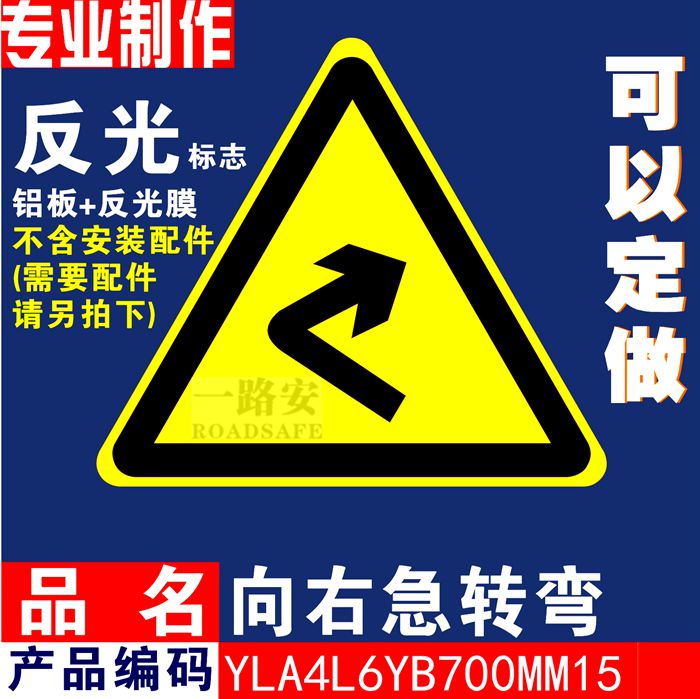 Left, right, sharp turn sign, reflective sign, traffic sign, highway sign 70CM