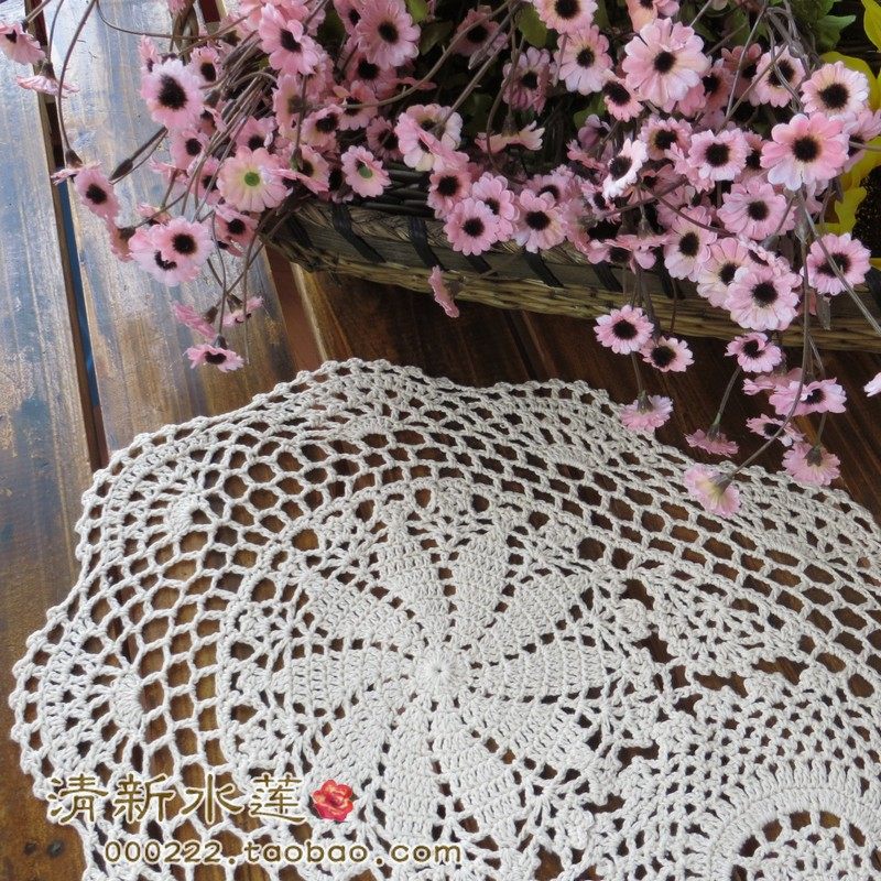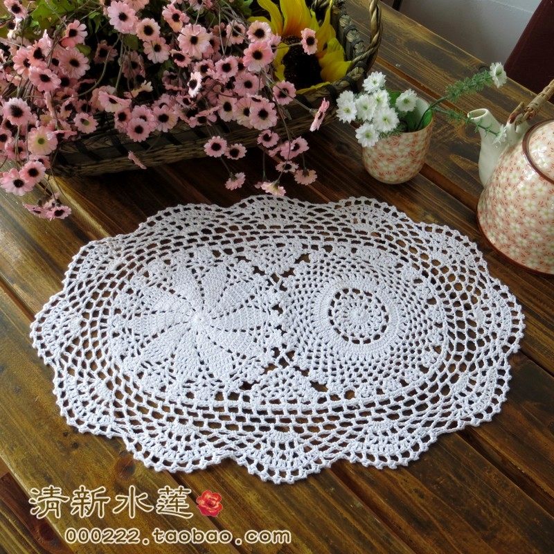 Fresh Water Lotus Hand Crochet Hook Flowers Trim Oval Dining Cushion Pure Cotton Woven Eurostyle Retro Table Mat White Beige