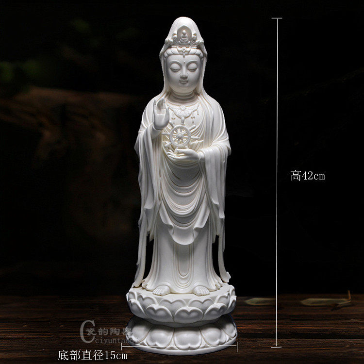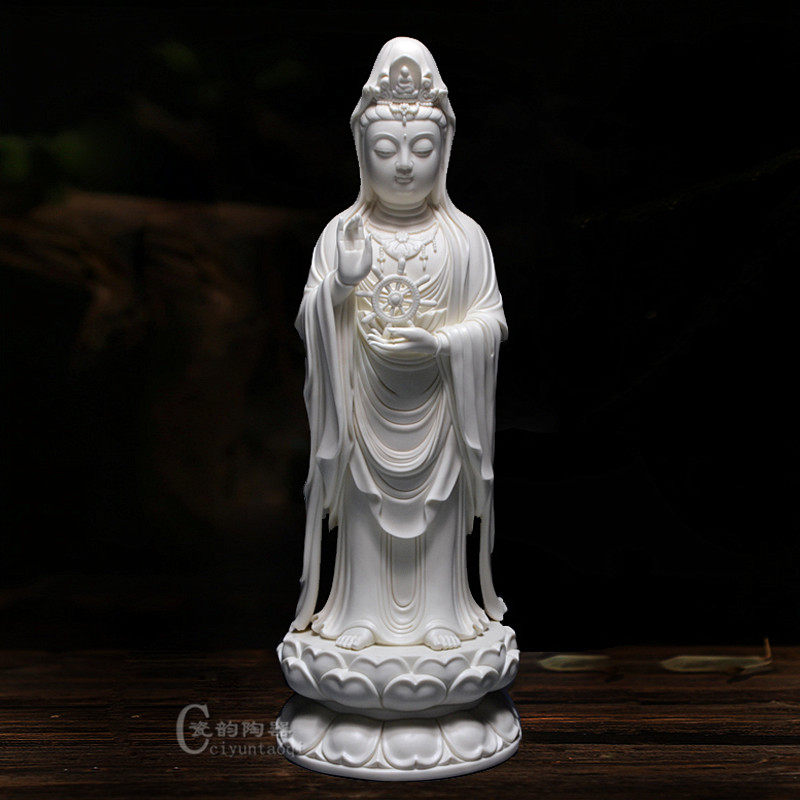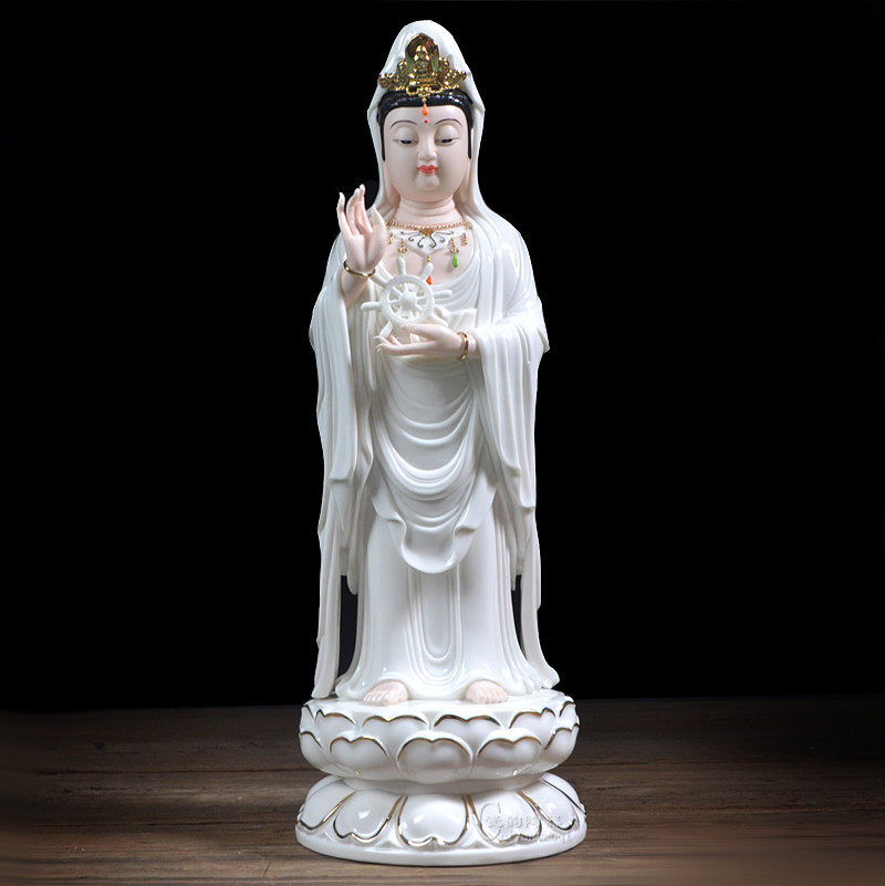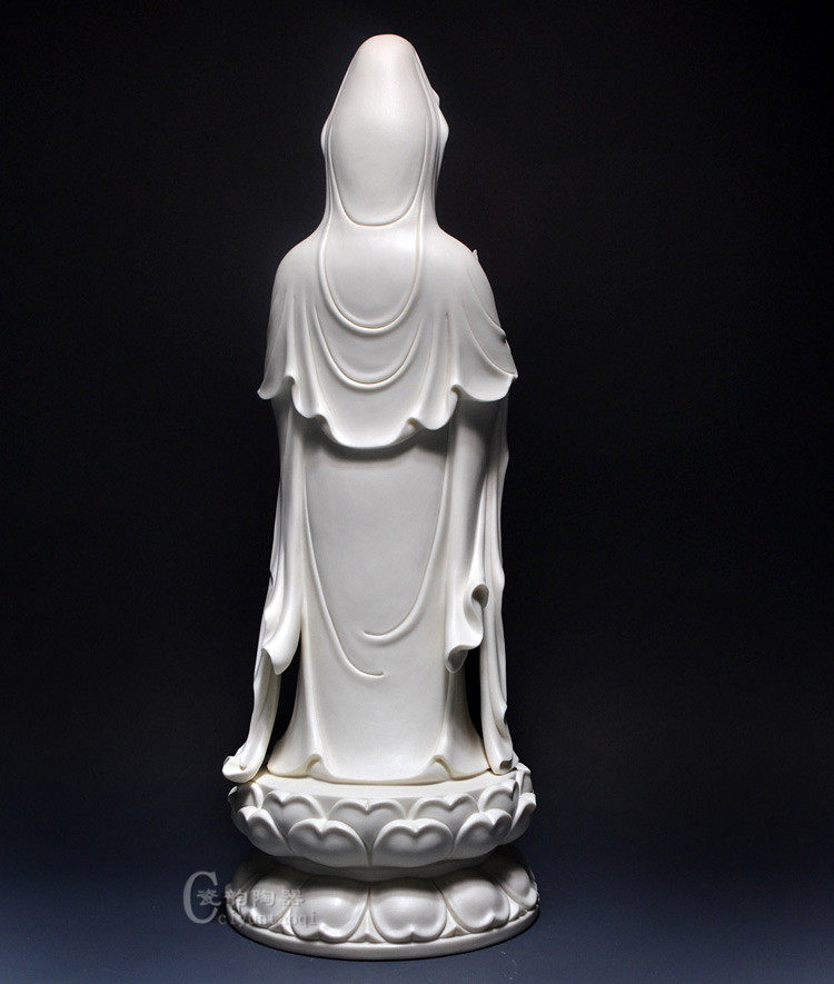 18-inch Deed ceramic South China Sea View Buddha Statue of BodhisattBodhisattva Swaying Pieces White Porcelain Statue of Liilian Guanyin
