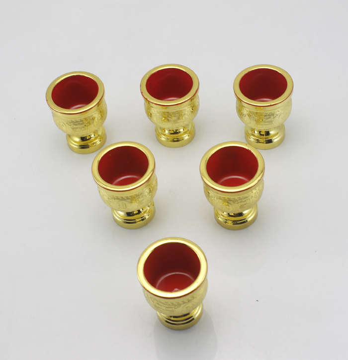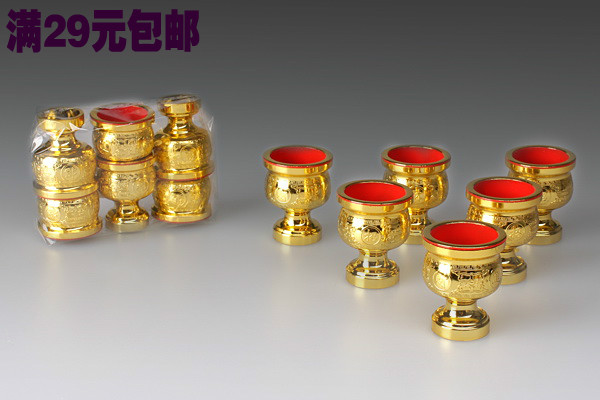 Offering before the Buddha Offering cup Worship god f Sacrificial supplies Holy water cup Wine glass Imitation gold Cup Lucky Treasure cup