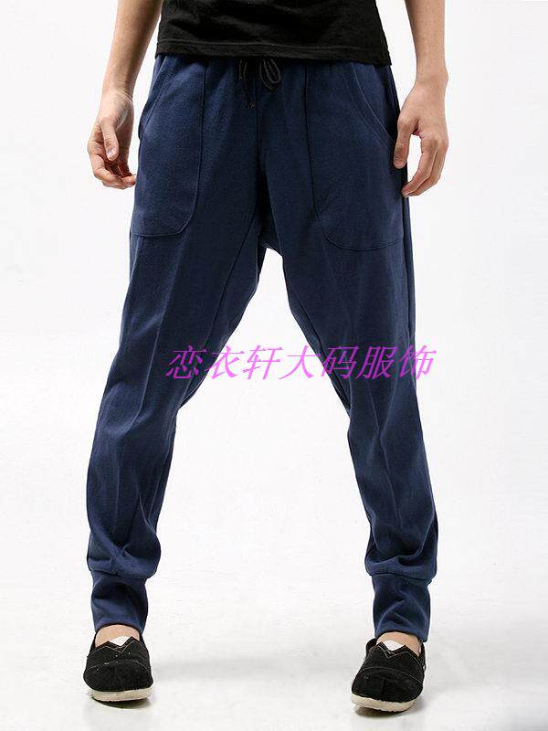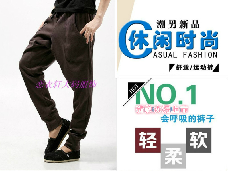 Spring new men's trousers plus fertilizer XL cotton cross pants harem pants tapered pants pencil feet sports trousers