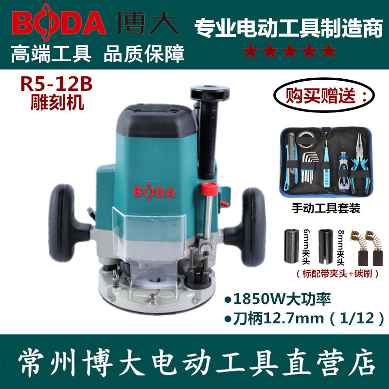 Boda R5-12B electric wood milling woodworking engraving machine large gong machine carving engraving and milling machine can be inverted tenon hole woodworking slotting