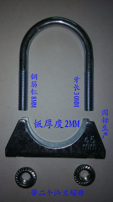 Factory direct sales exhaust pipe strong pipe clamp tube clamp hoop pipe hoop clamp u-shaped hoop 45MM throat hoop plated blue and white zinc