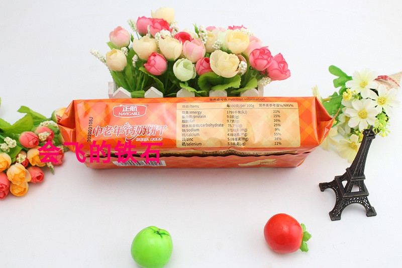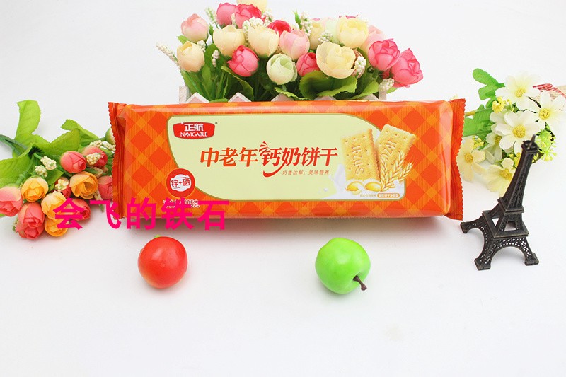 Middle aged calcium milk biscuit in Shandong Yimonte production is contained with zinc selenium nutrition beat 10 strips