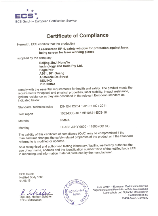 Eagle Pair 10600nm (CO2) laser protection board (window)
