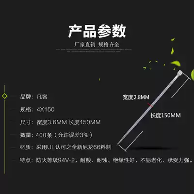 White 4 * 150mm self-locking nylon cable ties 400 plastic tie straps