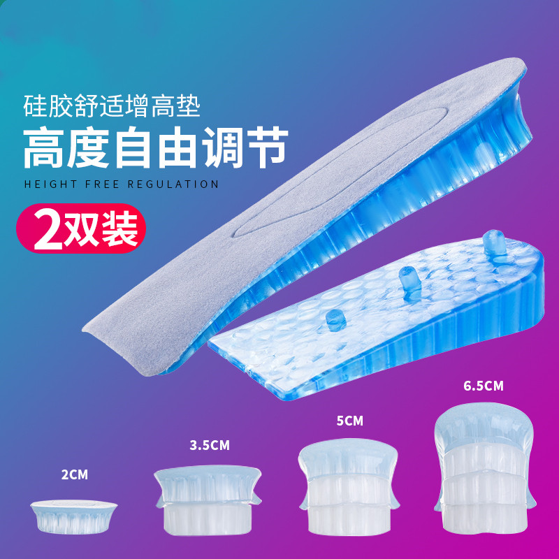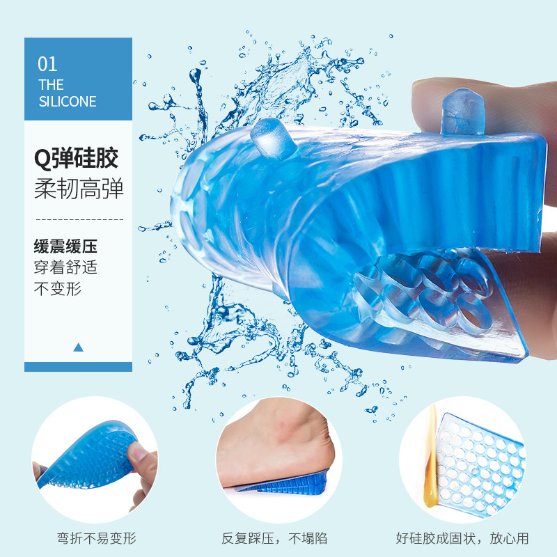 Invisible inner heightening insole half padded silicone heel conditioning Comfortable Breathable Damping Men 2 3 4 5cm