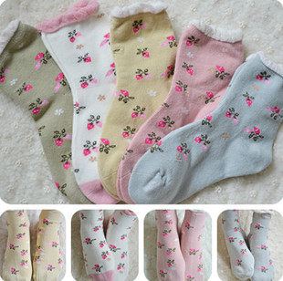 Classic retro pine strawberry lace stockings baby boys and girls pure cotton spring and autumn, boneless pine stockings