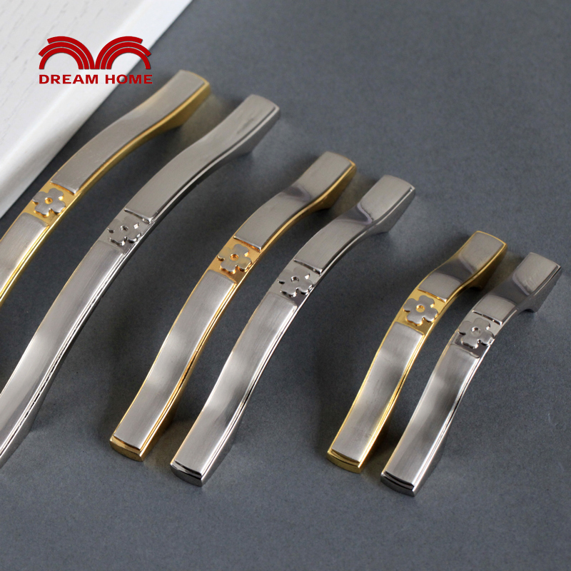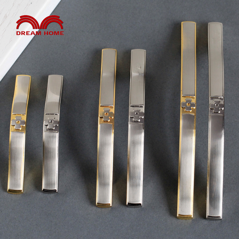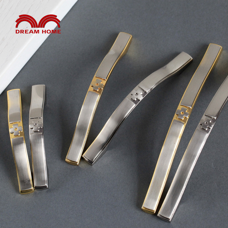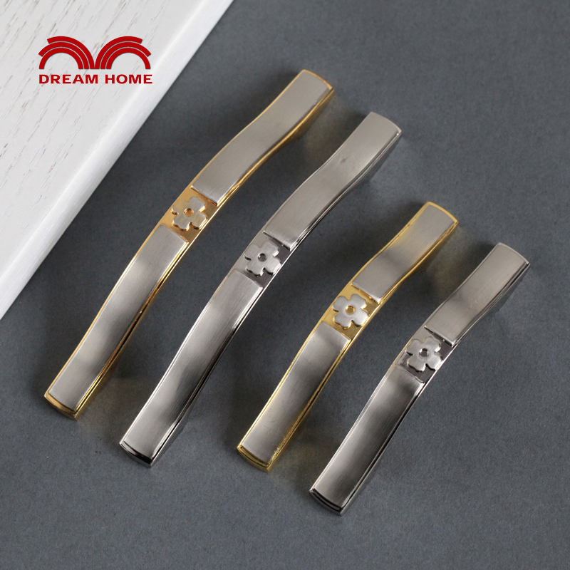 Two-color four-leaf lucky grass simple stainless steel modern handle Gold and silver brushed integral cabinet drawer wardrobe door handle