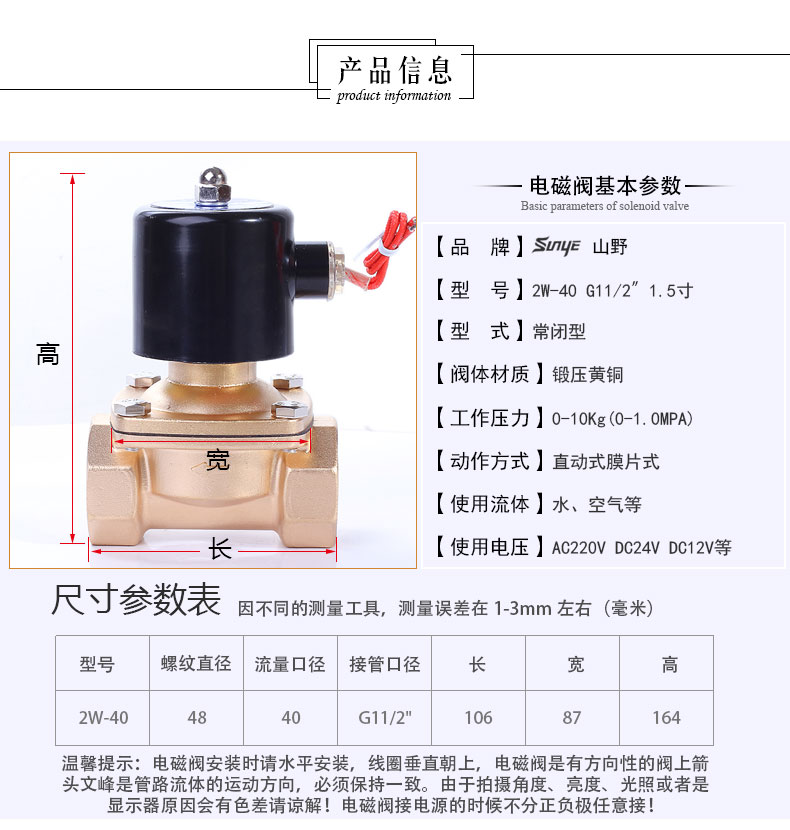2W-40 1 5 inch AC220V medium temperature 80 degrees 2W-40 1 5 inch AC220V medium temperature 120 degrees 2W-40 1 5 inch A