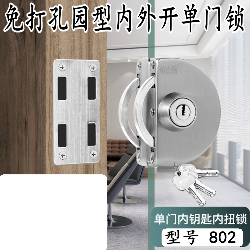 Glass door lock unlocked push and pull door double door lock stainless steel shop door lock free punch open double door lock
