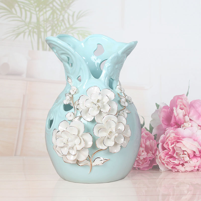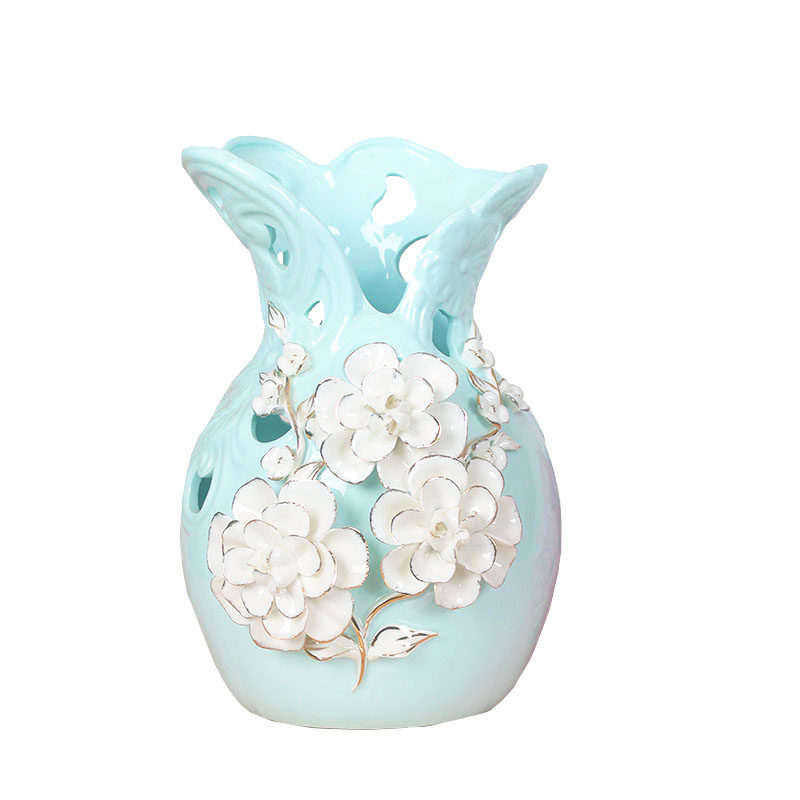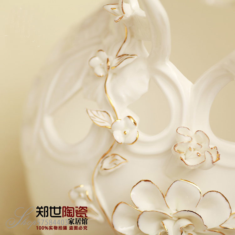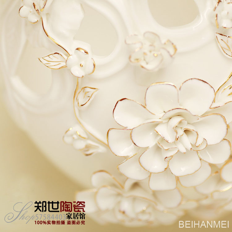 National living room decorations ceramic decorations pure white handmade hollow decorations painted gold vase wedding