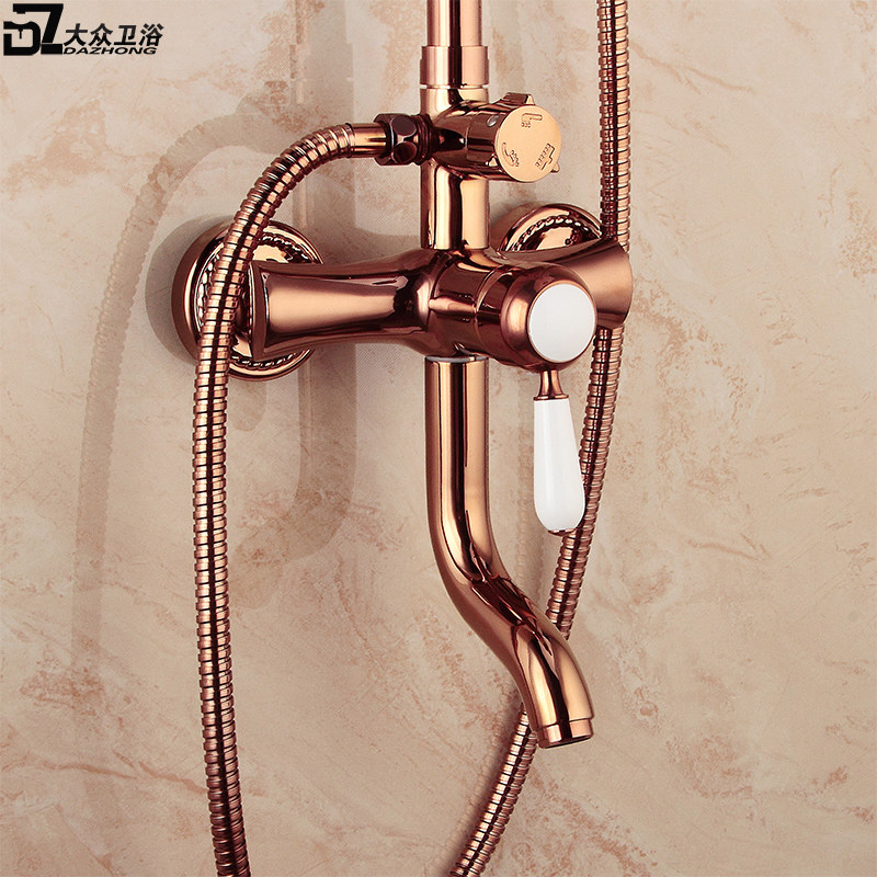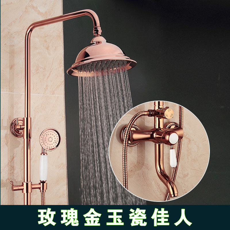 Full copper rose gold rain shower European retro shower set Gold double shower faucet with lift