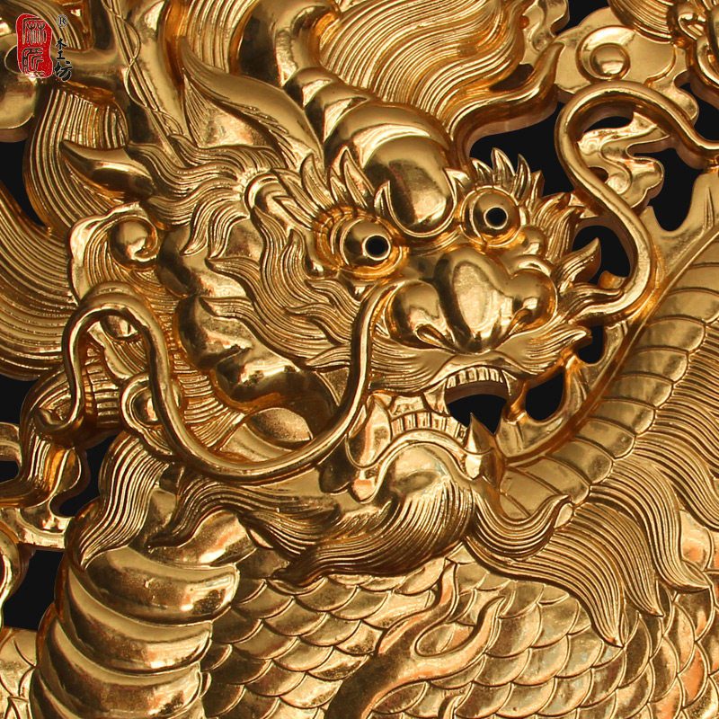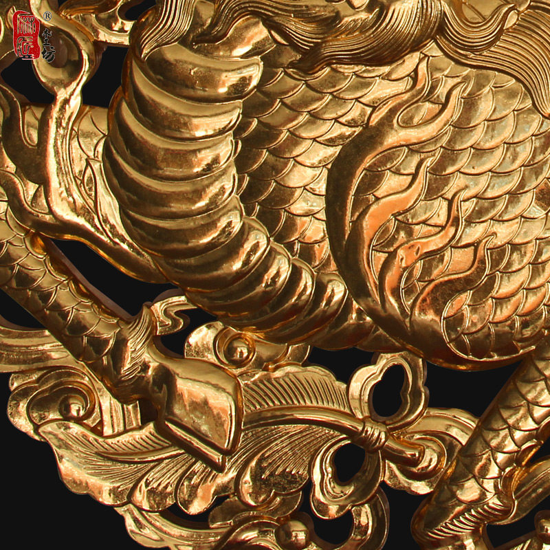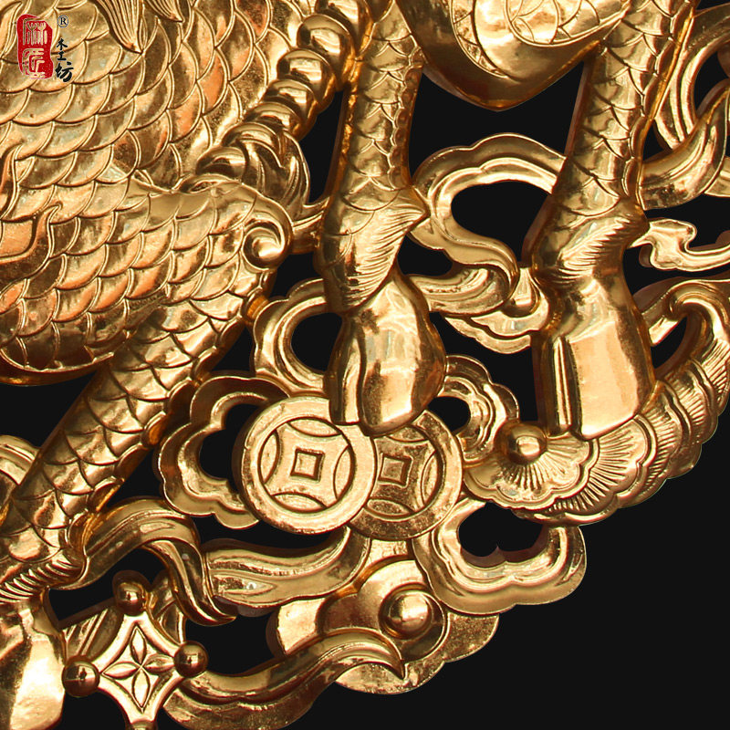 East Yang Wood Carving High-end Patch Gold Leaf Fragrance Zhangmu wall-hanging auspicious Kirin Town Residence Thever Hollowed-out Three-dimensional Pendant