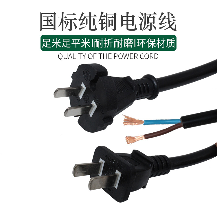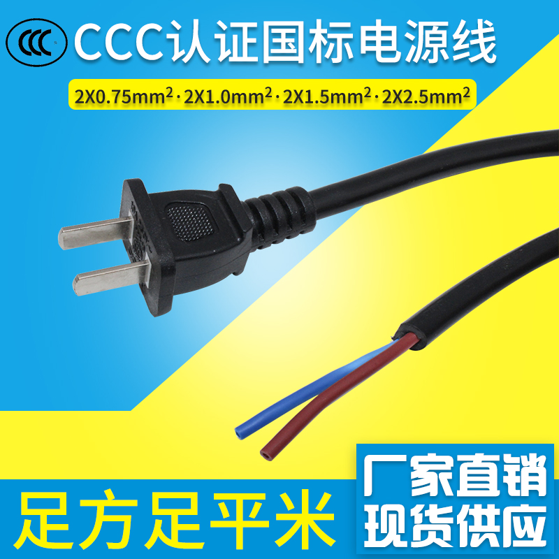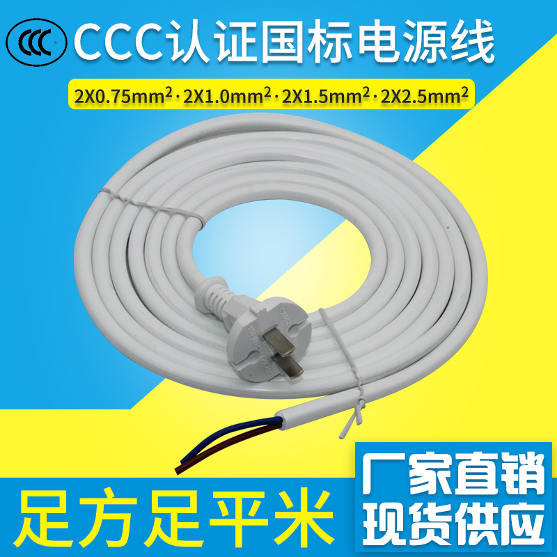 Pure copper national standard power cord two-core with plug power cable 2-core 1 1 5 square 2 meters two-hole wire
