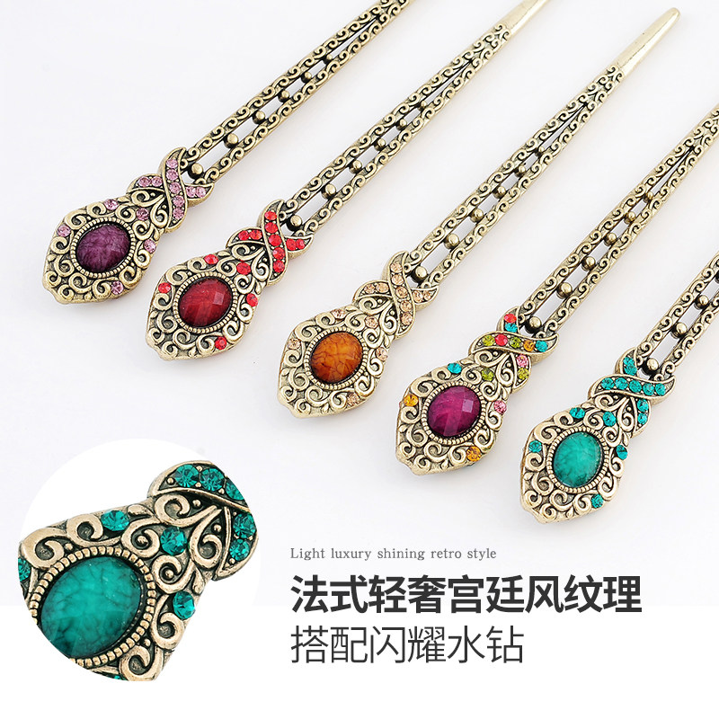 Mrs Zhang hair jewelry Ancient Hanfu hairpin Women's plate hair headdress Metal rhinestone classical hairpin Long hairpin hairpin