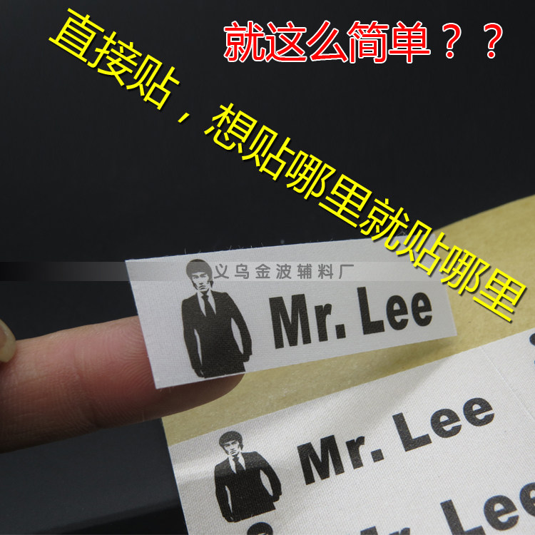 Adhesive label directly attached (printed type) Hot melt adhesive label ironing and heating paste (woven embroidery type) Double-sided adhesive directly attached (printed weaving embroidery)
