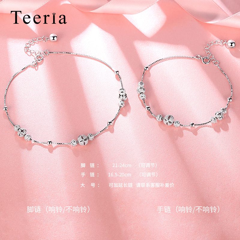 Personality 925 silver transfer beads, bells, silver anklets, women's net red simple bracelet jewelry, students, niche, ancient style, sexy