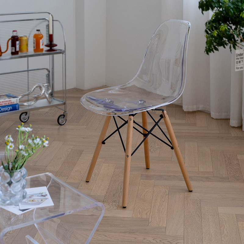 Nordic minimalist fashion European style table and chairs rear modern minimalist transparent color solid wood footed single leaning back chair Home dining chair