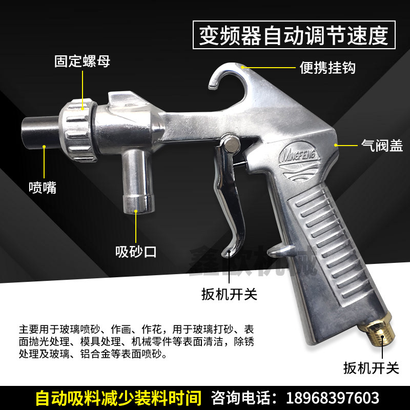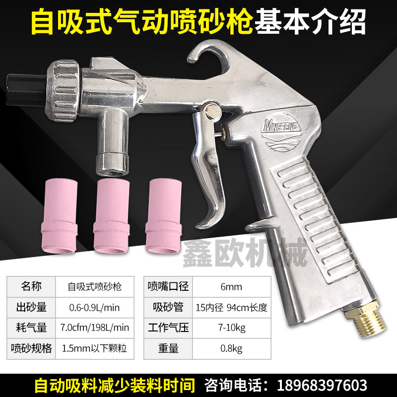 90L sandblasting machine spray gun style sandblasting gun with switch self-suction light sandblasting gun head ceramic iron nozzle