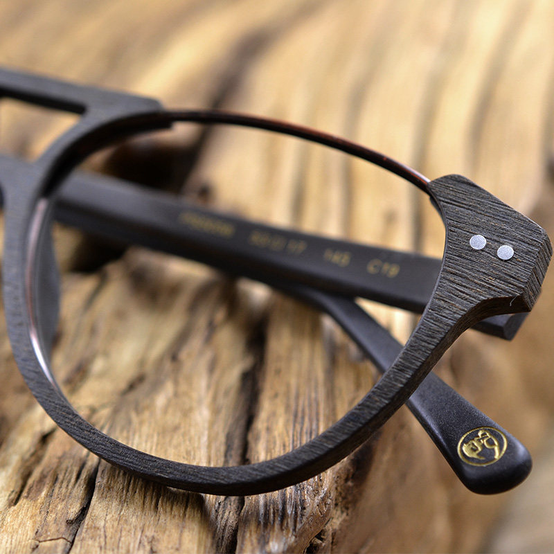 POSESION Handmade Wood Grain Glasses Frame Men's Tide Lower Half Frame Frame Personality Inverted Frame Myopia Mirror Fashion Personality