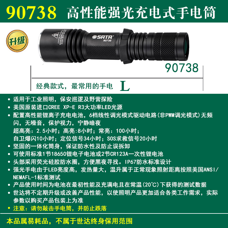 SATA Shida Tool Intense Light Rechargeable Flashlight 90738 Far Light Flashlight
