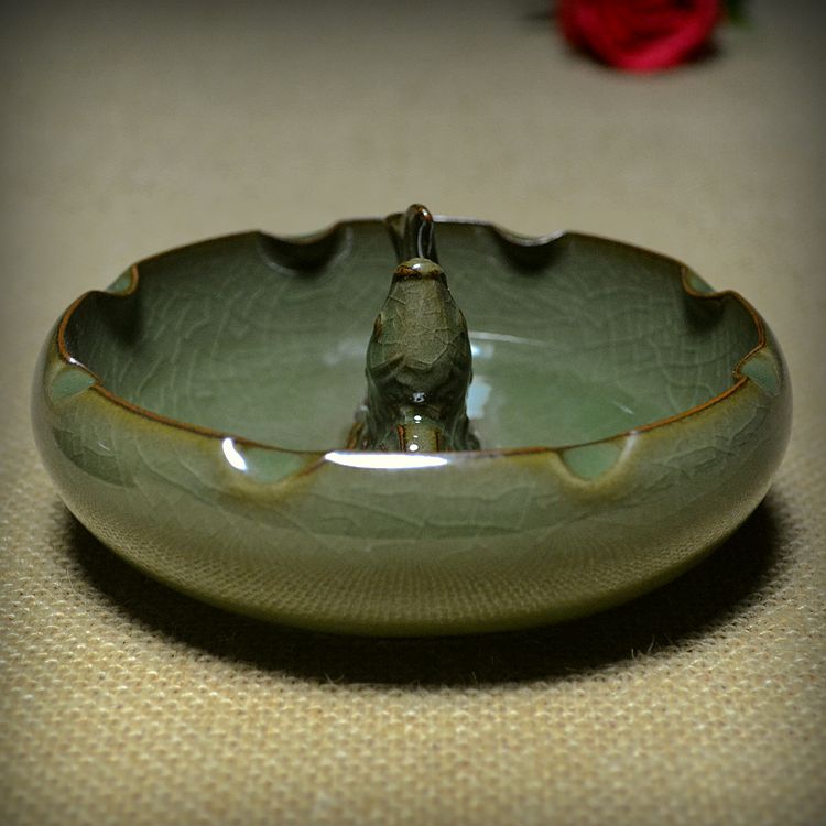 Longquan celadon ancient kiln old Plum Green open slices incense and scented Gear Glass glaze Yang Shijun works ornaments collection scented gear