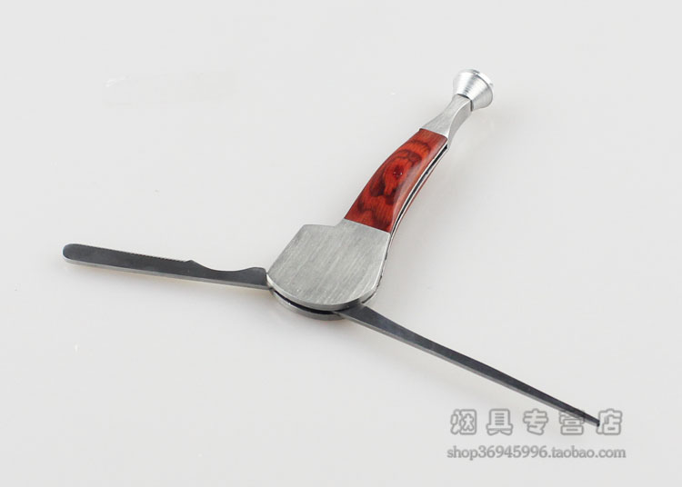 Pipe Smoking accessories Solid wood luxury stainless steel cigarette knife (scraper pressure rod through needle)straight red