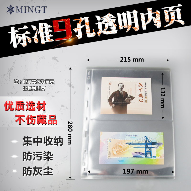 (810464) Mingtai standard nine-hole loose-leaf inner page (transparent 2-line banknote Philatelic inner page)