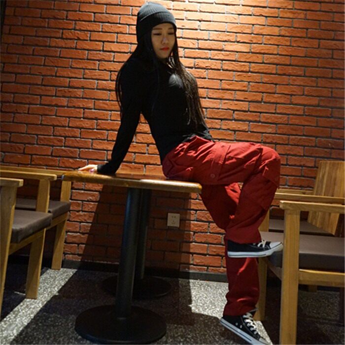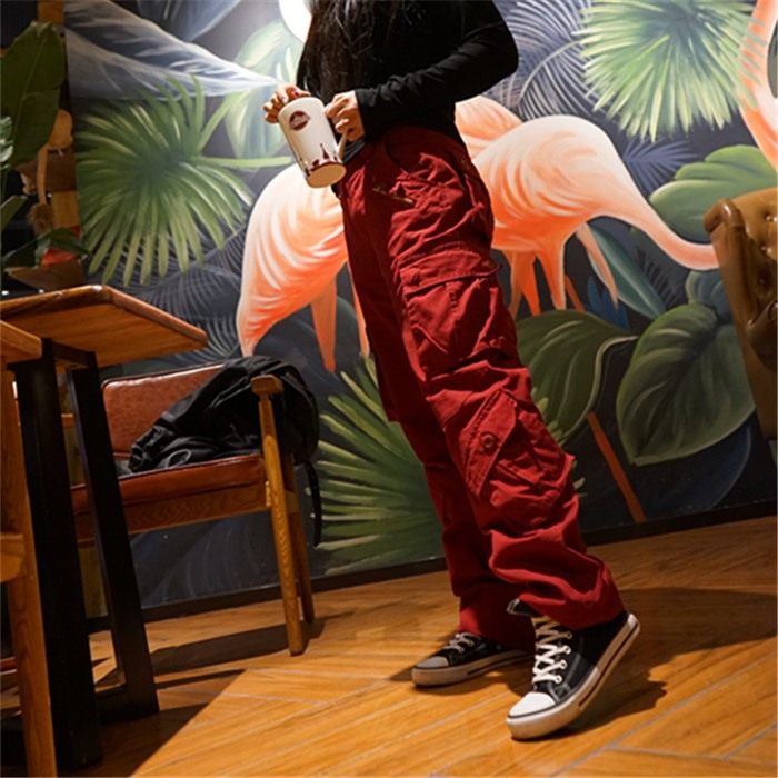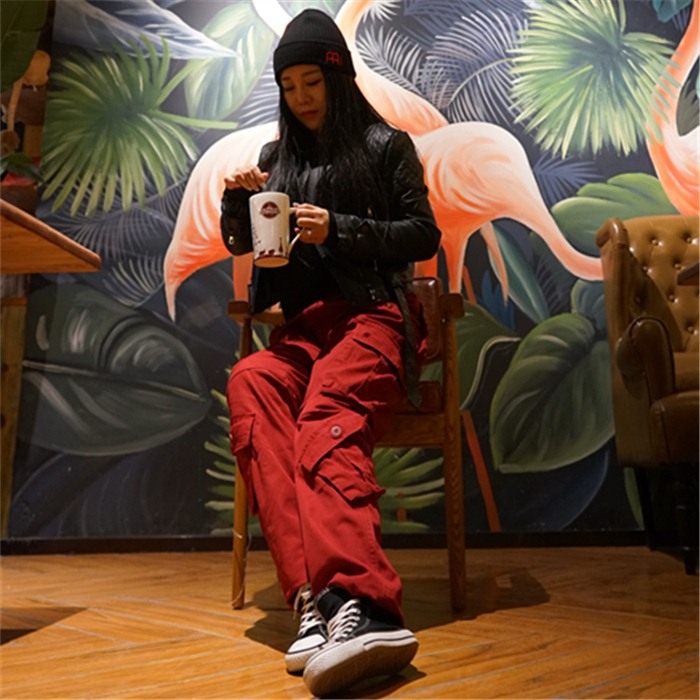2021 summer pure cotton women's overalls casual multi-pocket hip-hop trousers trousers straight square dance couple pants