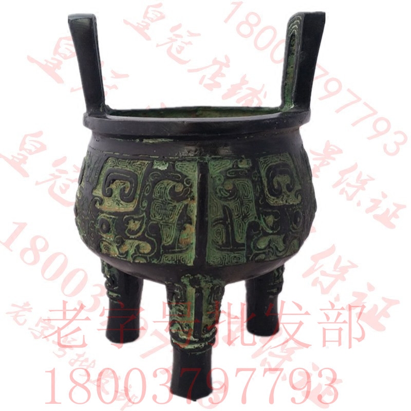 Bronze antique ornaments round tripod three-legged round tripod copper incense burner home decoration antiques