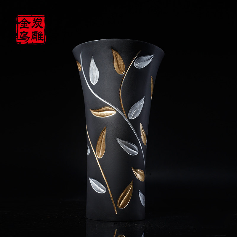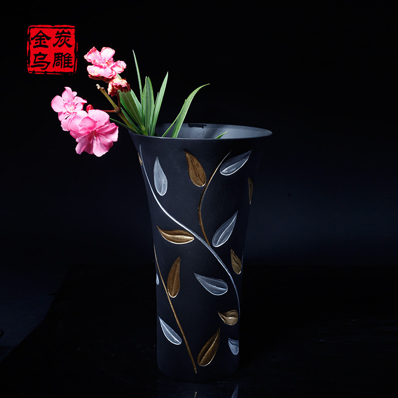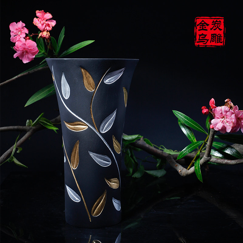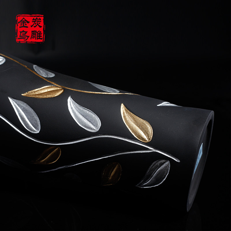 Jinwu charcoal carved leaves brilliant vase entrance TV cabinet ornaments rich bamboo decorations to send elders to friends
