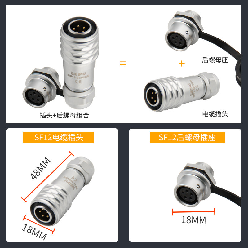 WEIPU Weipu waterproof air connector Industrial socket SF12 Series 1212 Cable plug rear nut seat
