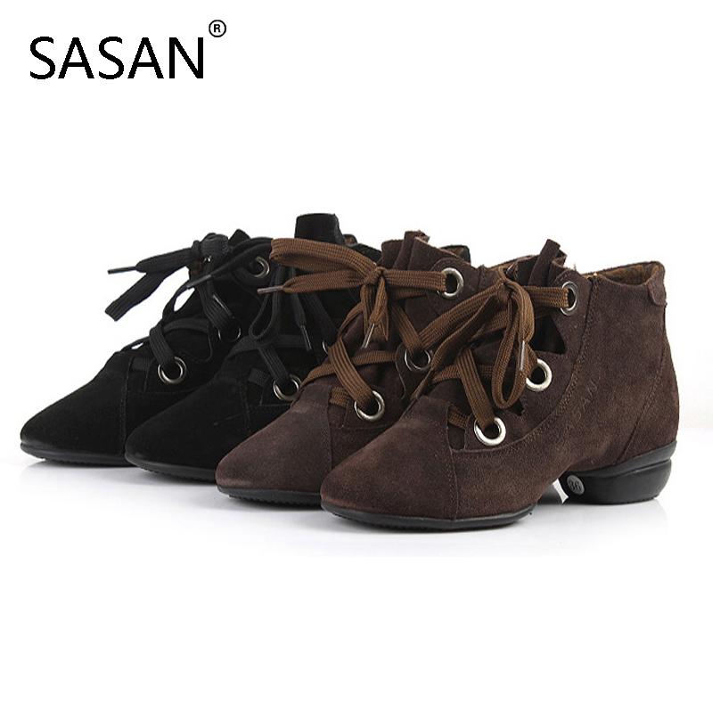 sasan women's soft sole mid-heel heightened fashion dancing shoes jazz square shoes sports fitness dance shoes high tube