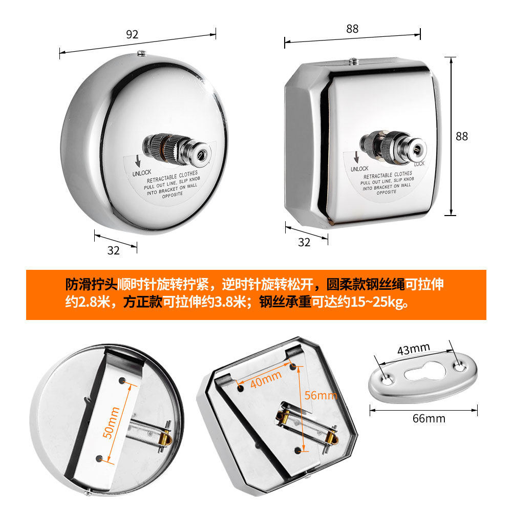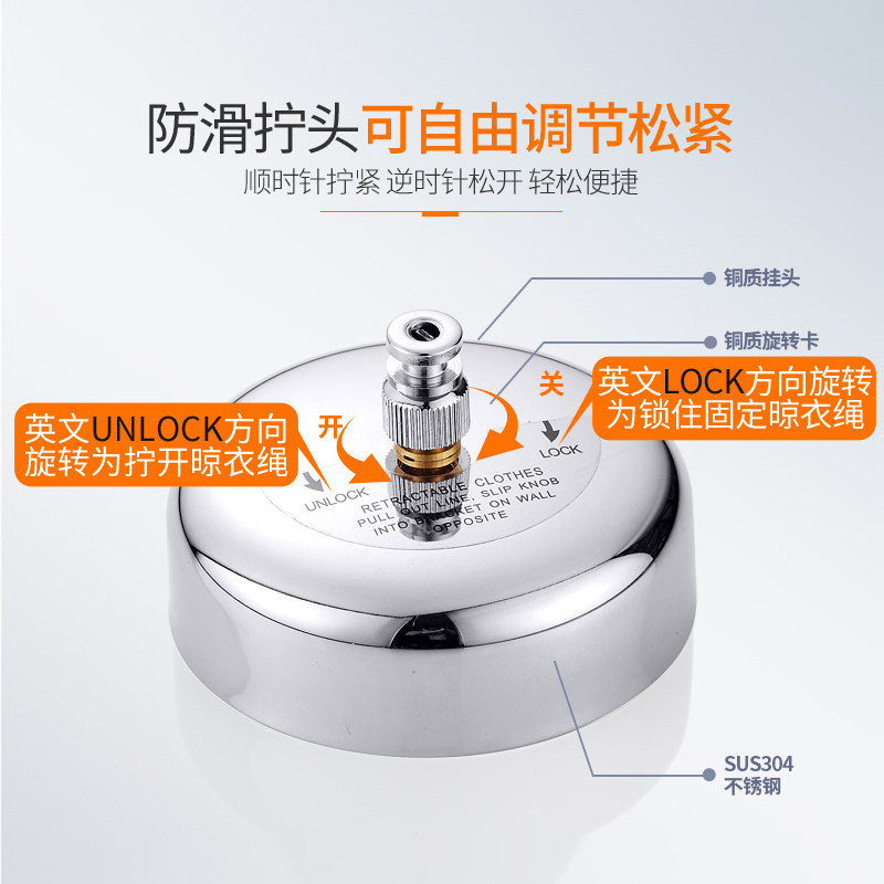 304 stainless steel telescopic clothesline Bathroom balcony drying rack Wall hanging invisible wire indoor household free drilling