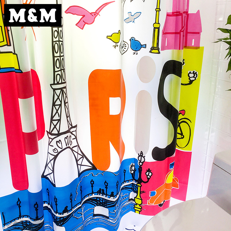 M Momma EVA waterproof mildew warm bathroom curtain Cartoon powder room partition curtain Shower curtain Love Paris shower curtain