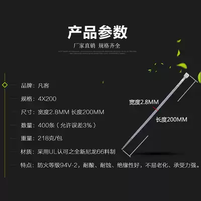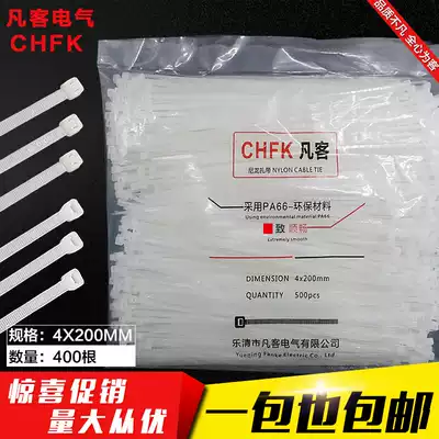 White 4 * 200mm width 2 7mm self-locking nylon cable ties 400 plastic wire straps