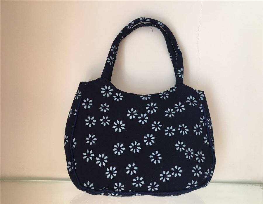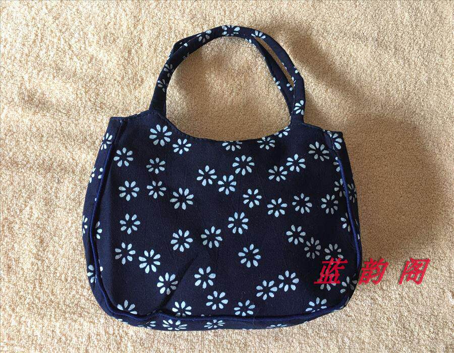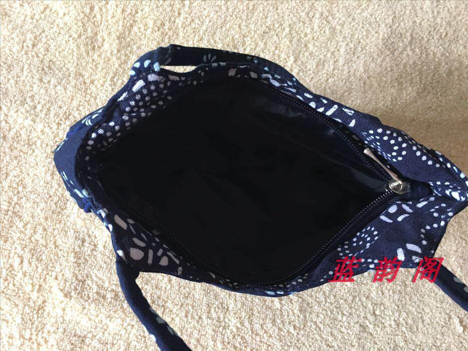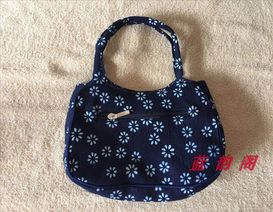 Hot Pin Blue Rhyme Charm printed cloth bag in old age small bag pure cotton minimalist around zipper hand carrying small round bag Flower Random-Taobao