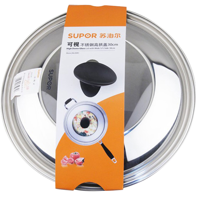 Supor stainless steel visual pot cover high arch 30 32cm glass cover tempered cooking pot cover original factory