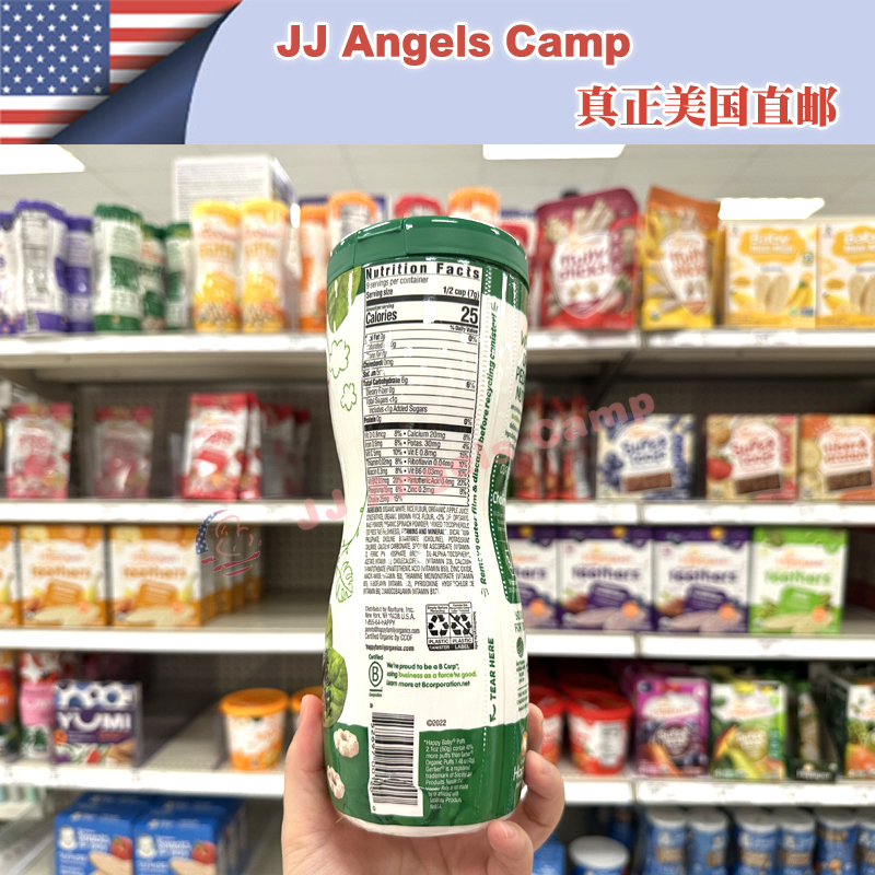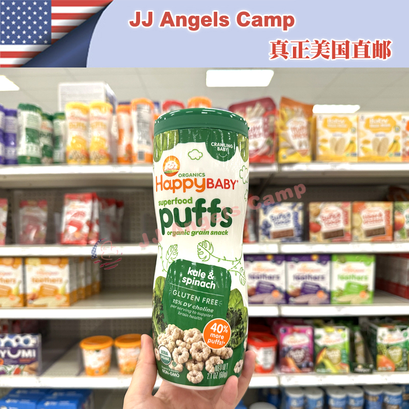 American Happy Baby Jubilee Organic Whole Wheat Fruit Puffs Vegetable Flavor Rich in Calcium, Iron and Zinc 60g