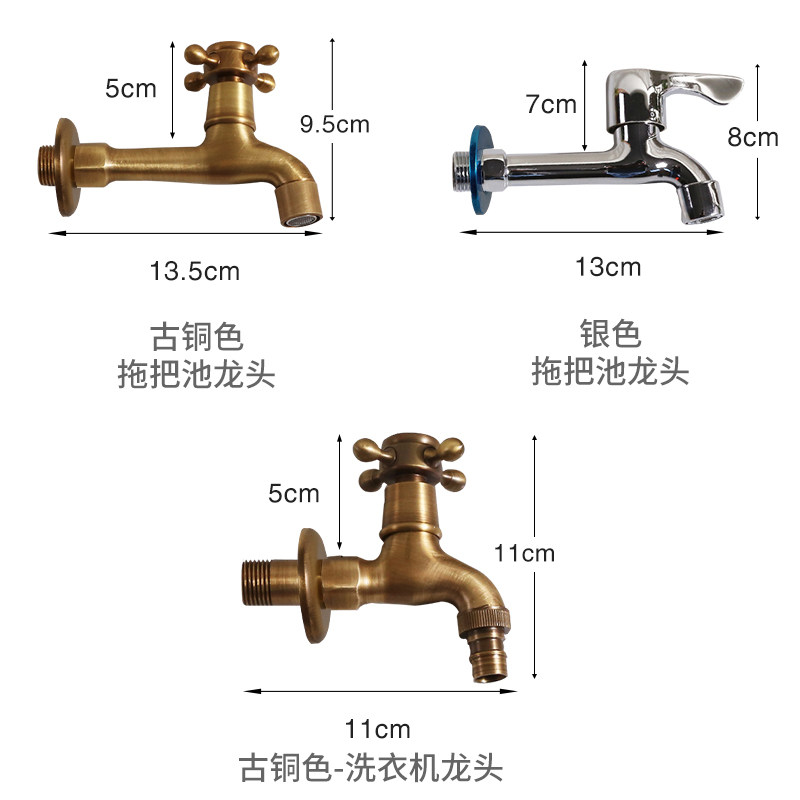Antique bronze color (mop pool long tap) silver (mop pool tap) ancient bronze color (washing machine tap) ancient bronze color (mop pool short tap)