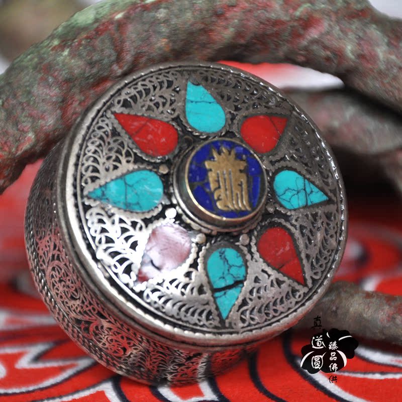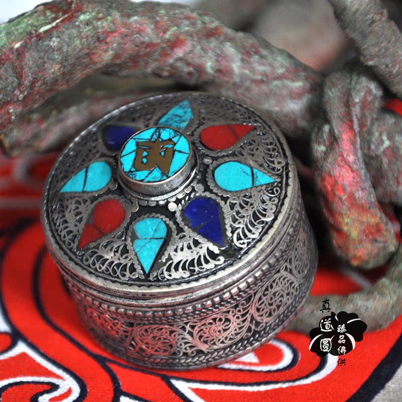Rice box Nepal exquisite handmade Tibetan silver pinched turquoise Coral rice box French box small