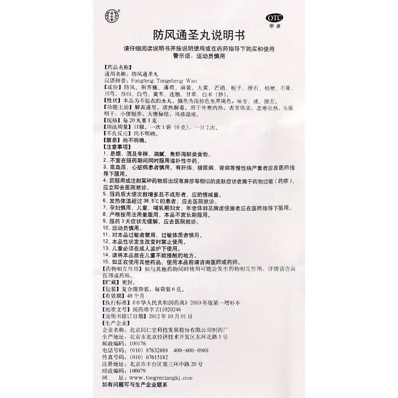 Tongrentang Windproof Pass Holy Pill 10 sacks of antidote to clear the heat and detoxifying headache pharyngeal dry rubella wet sore outside the heat