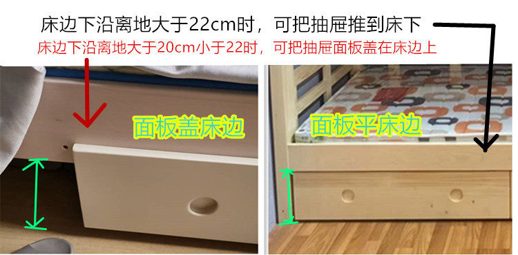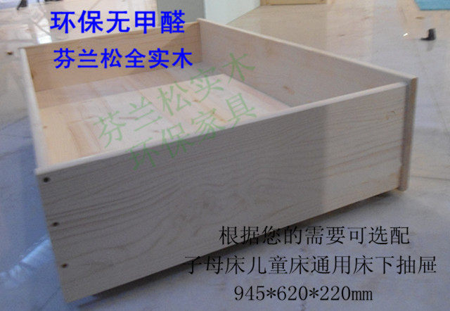 Pure solid wood Finnish pine high and low step up and down mother and child bed Universal bed storage drawer Children's storage box