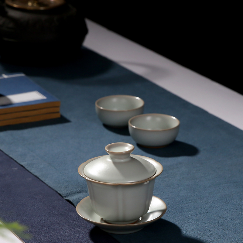 Ruyao Gaiwan Taiwan Guanjie Ru Porcelain large piece Three-year-old Gaiwan Kung Fu Tea set Shunfeng