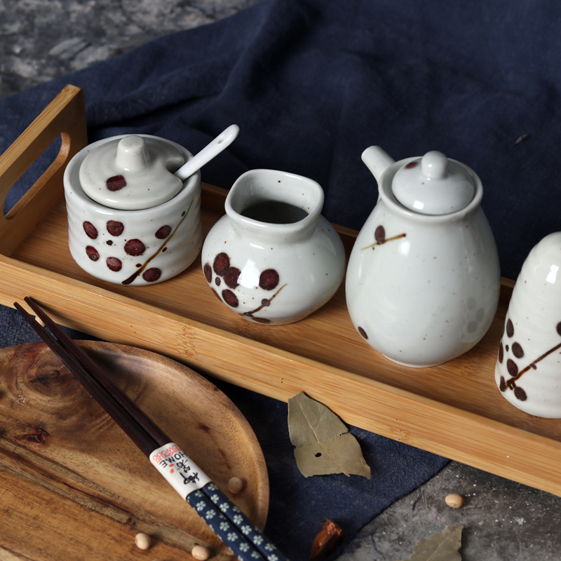 Multi-capacity selection Japanese seasoning pot Sushi Ceramic soy sauce pot Household seasoning bottle Japanese and Korean tableware Sakura pot
